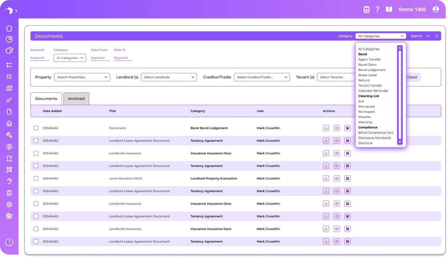 Documents can be stored and tagged by property, tenant, landlord, or tradie, ensuring quick and easy retrieval whenever you need them.