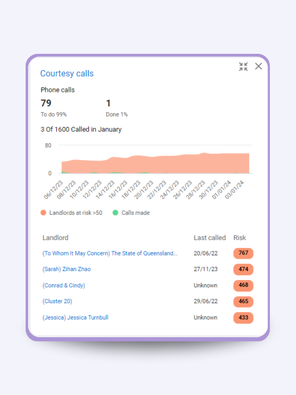 Assessing risk is key. By understanding factors like overdue inspections, tenancy arrears, or low engagement, you can address issues before they escalate. Proactive management of these risks ensures landlords feel supported and confident in your services.