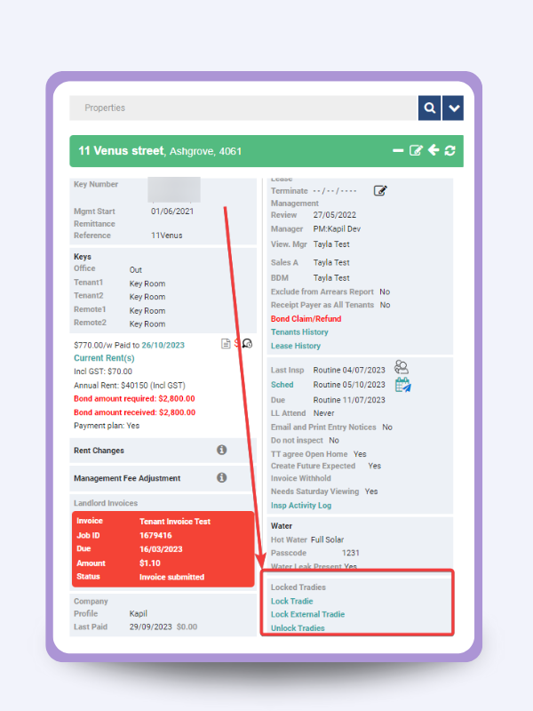 If a landlord is unhappy with a tradesperson, OurProperty lets you suggest alternative suppliers and view ratings of listed tradespeople. You can also lock in specific tradespeople for particular trade types and payment methods. This ensures that only the chosen tradesperson is used for the job, giving you better control over service quality and consistency.