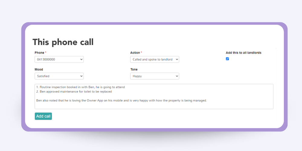 OurProperty makes it easy to track landlord feedback, whether it’s related to maintenance issues, rent reviews or inspections. By logging calls and setting reminders, it becomes easy to address these concerns promptly, so you can keep your landlords happy and improve their experience.