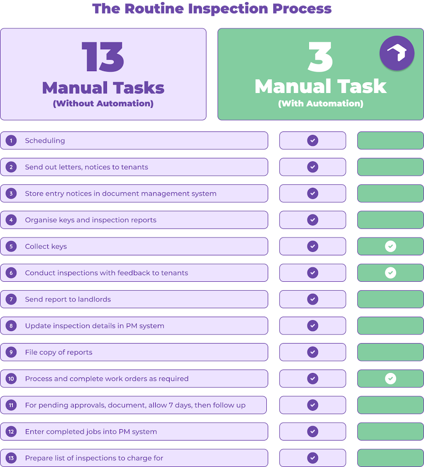 Our dashboards make it easy to rearrange or reschedule inspections in seconds. Simply drag and drop tasks as needed.Property Managers can also use our PM Inspect App to easily reschedule inspections.