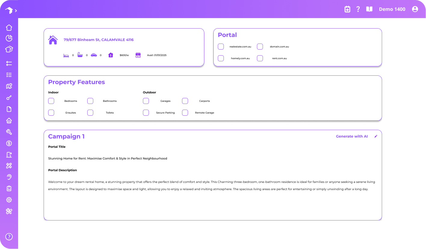 Easily advertise on REA, Domain, Homely, Rent.com.au and more. Publish directly through OurProperty to ensure your listings reach the right audience with minimal effort.