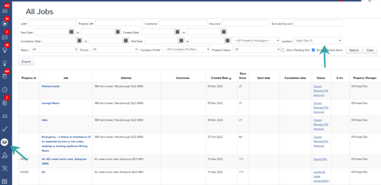 When viewing All Jobs there is a new filter option to search via a Landlord. If the owner owns more than one property, all maintenance jobs for the various properties will be visible.