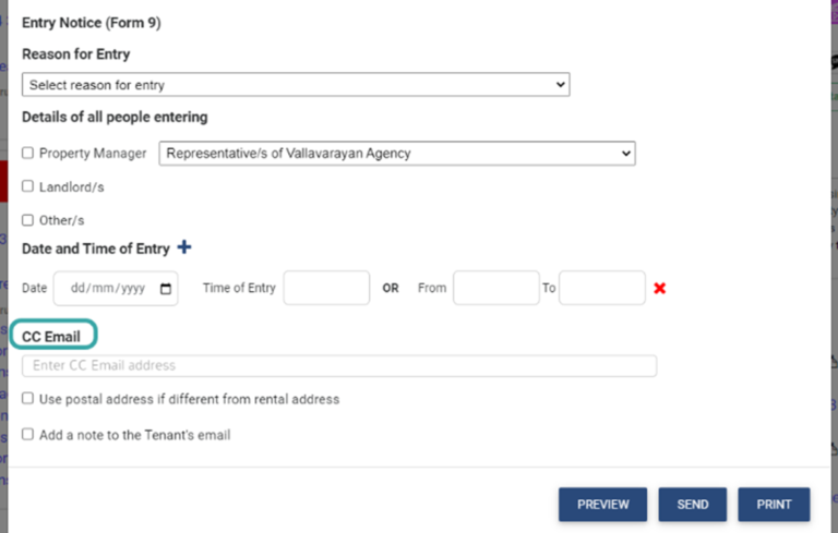 When sending an Entry Notice from the Client Hub you can now include a CC email address to send a copy to an alternative contact. Use this option to send a copy to the entering tradesperson or a person outside of your OurProperty database.